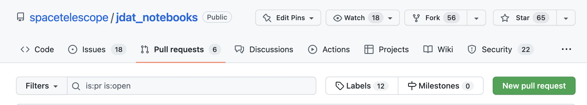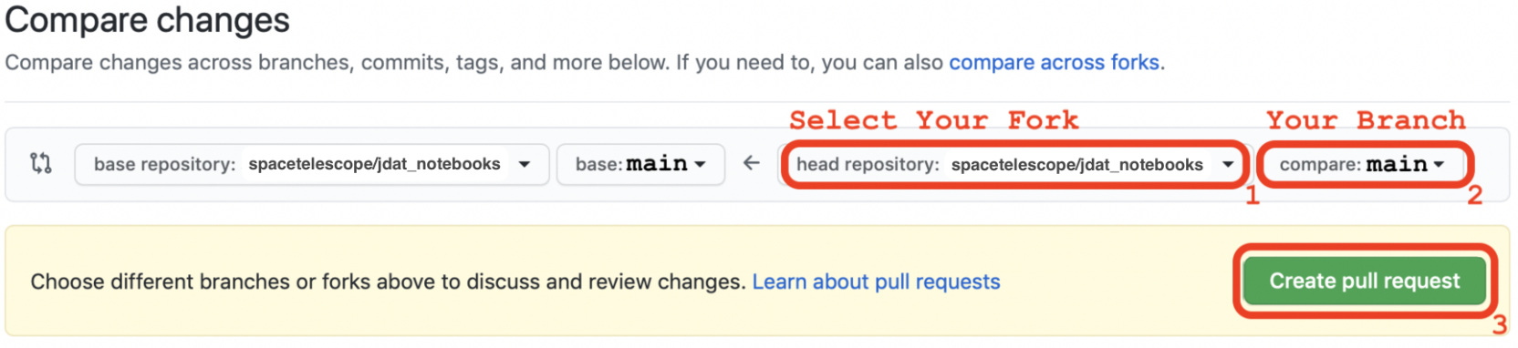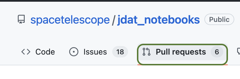 要创建拉取请求,请导航到 STScI jdat_notebooks 仓库,并点击 Pull Request: